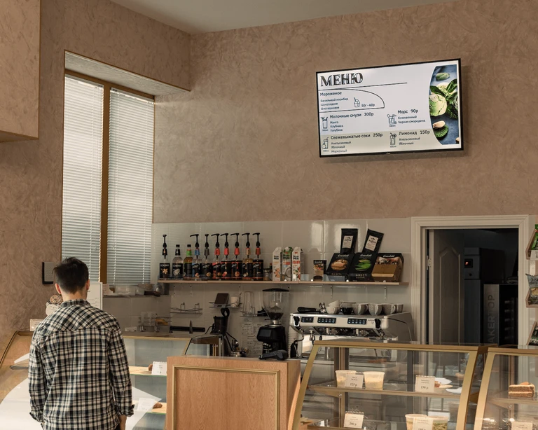 — Как часто клиенты обращают внимание на экраны? — Постоянно — перечень и стоимость напитков указаны на экране.