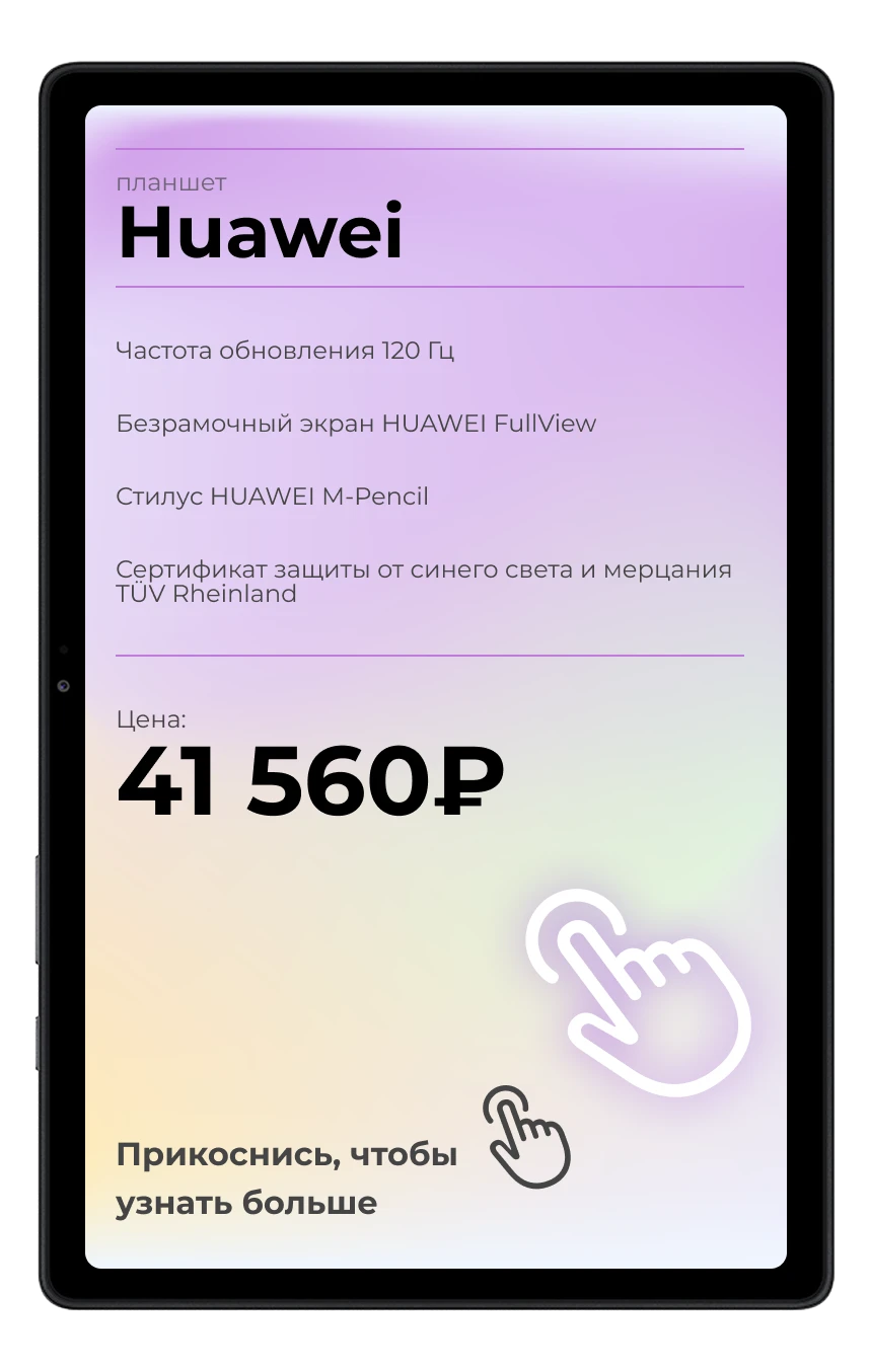 Исключите забывчивость и незнание товара продавцом. Пусть экран расскажет про себя сам.